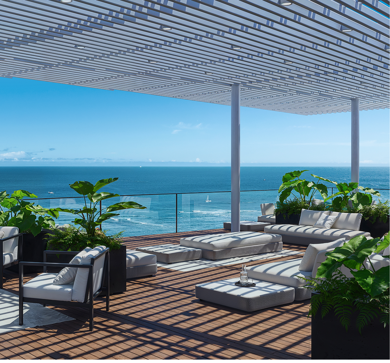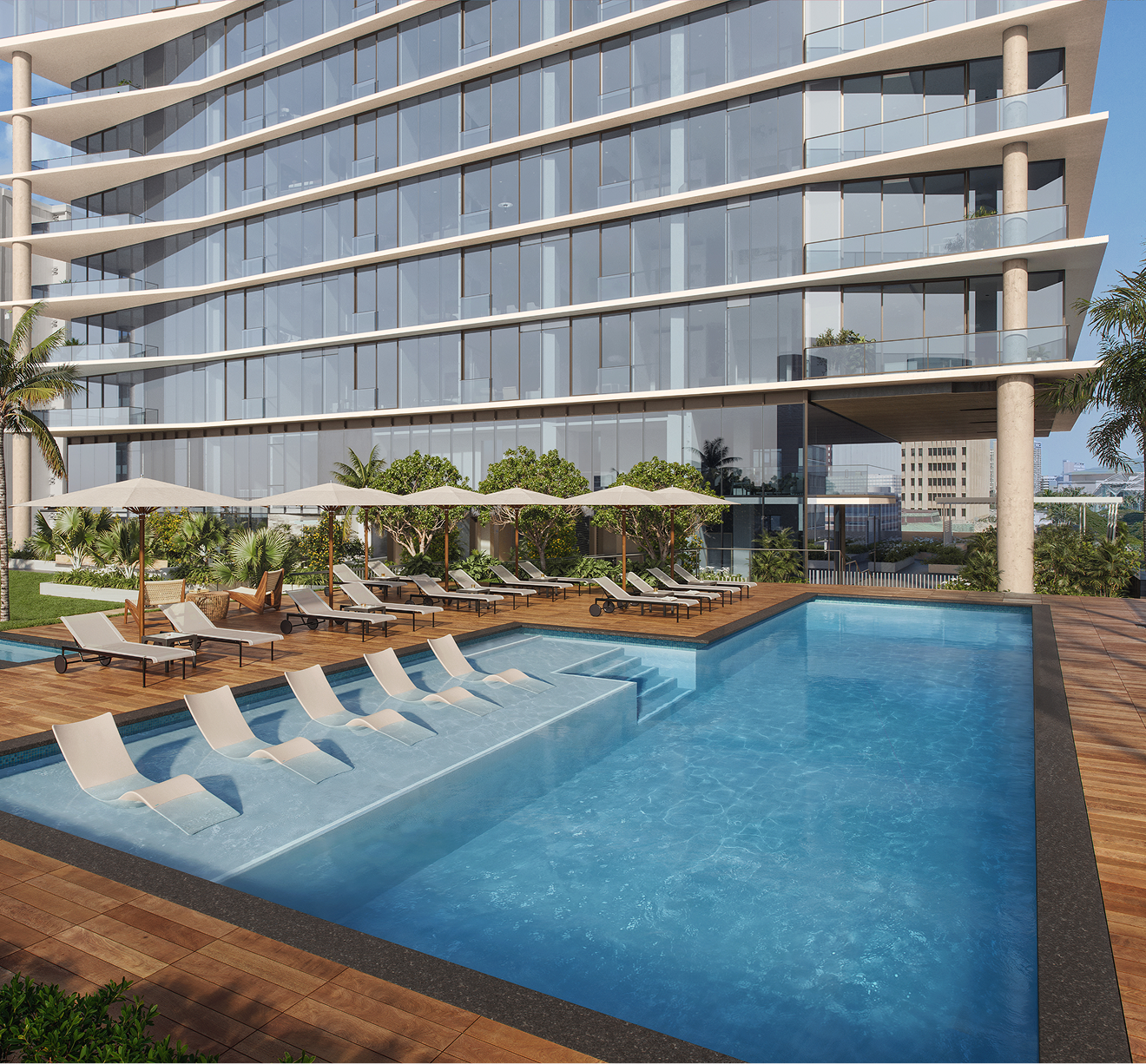優雅なリラックスエリアを備えたラグジュアリーなプール、天然芝を敷き詰めた広場、バーベキュースペースはもちろん、スチーム・ドライサウナ、ゴルファーには嬉しいシミュレータールーム、そして40階にはすべての住人がオーシャンビューを堪能できるルーフトップが。たとえ低層階のオーナーでも、この素晴らしい景色を楽しんで欲しいという開発会社の発想から実現した理想の共有施設です。
